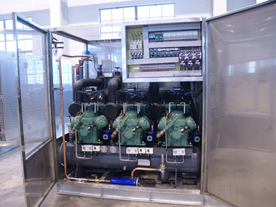 El congelador de placa horizontal se puede equipar con la unidad de compresión de tornillo o de pistón Bitzer, para proporcionarle una refrigeración de alta eficiencia.