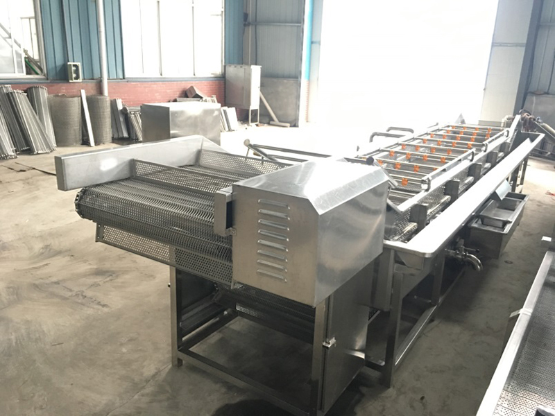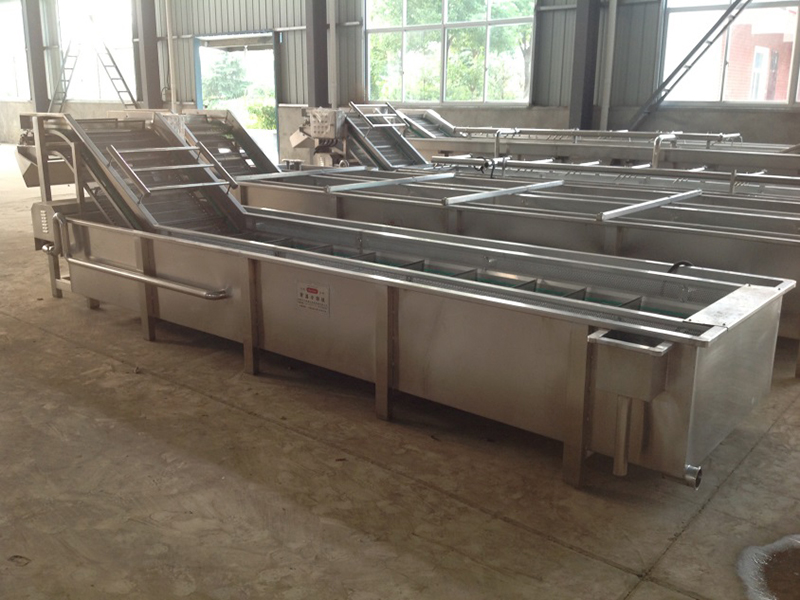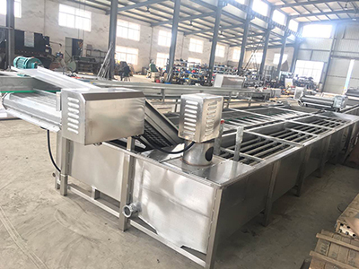 El enfriador de agua normal enfría rápidamente los vegetales blanqueados. Asimismo, este dispositivo sopla las impurezas de la superficie de los productos. Los productos se entregan al tanque de agua mediante la banda de mala y se enfrían en el proceso.