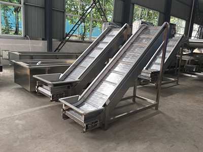 El transportado elevador lleva los productos al alimentador vibratorio, y drena el agua en el proceso.